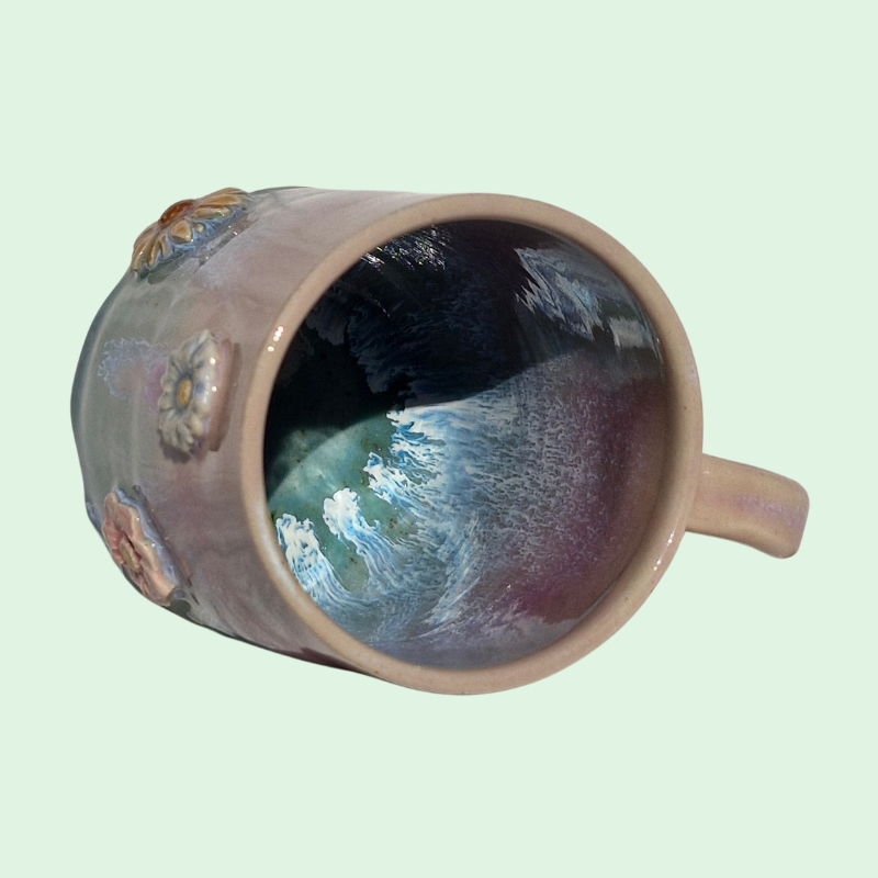Håndlavet kop i stentøjsler – drejet, fin pudset og glaseret af mig i mit lille værksted i Kalundborg.