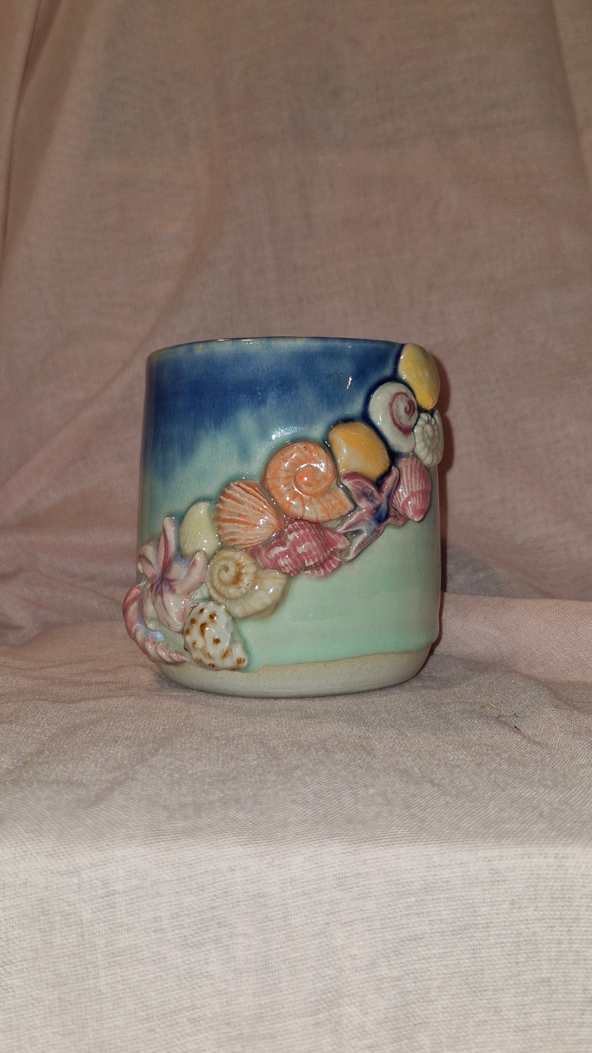 Håndlavet kop i stentøjsler – drejet, fin pudset og glaseret af mig i mit lille værksted i Kalundborg.
